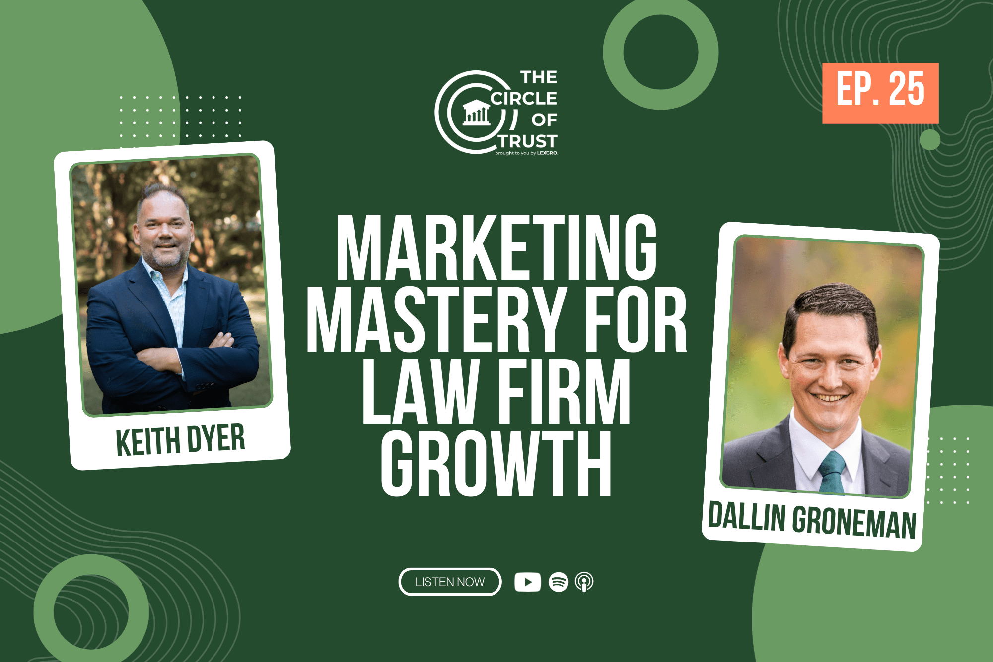 The Circle of Trust is a safe and objective space where law firm owners and personnel uncover marketing insights to scale their practices. Whether you’re a solo practitioner or part of a multi-partner firm, our episodes are packed with actionable advice to grow your law firm, boost revenue, and achieve your goals.